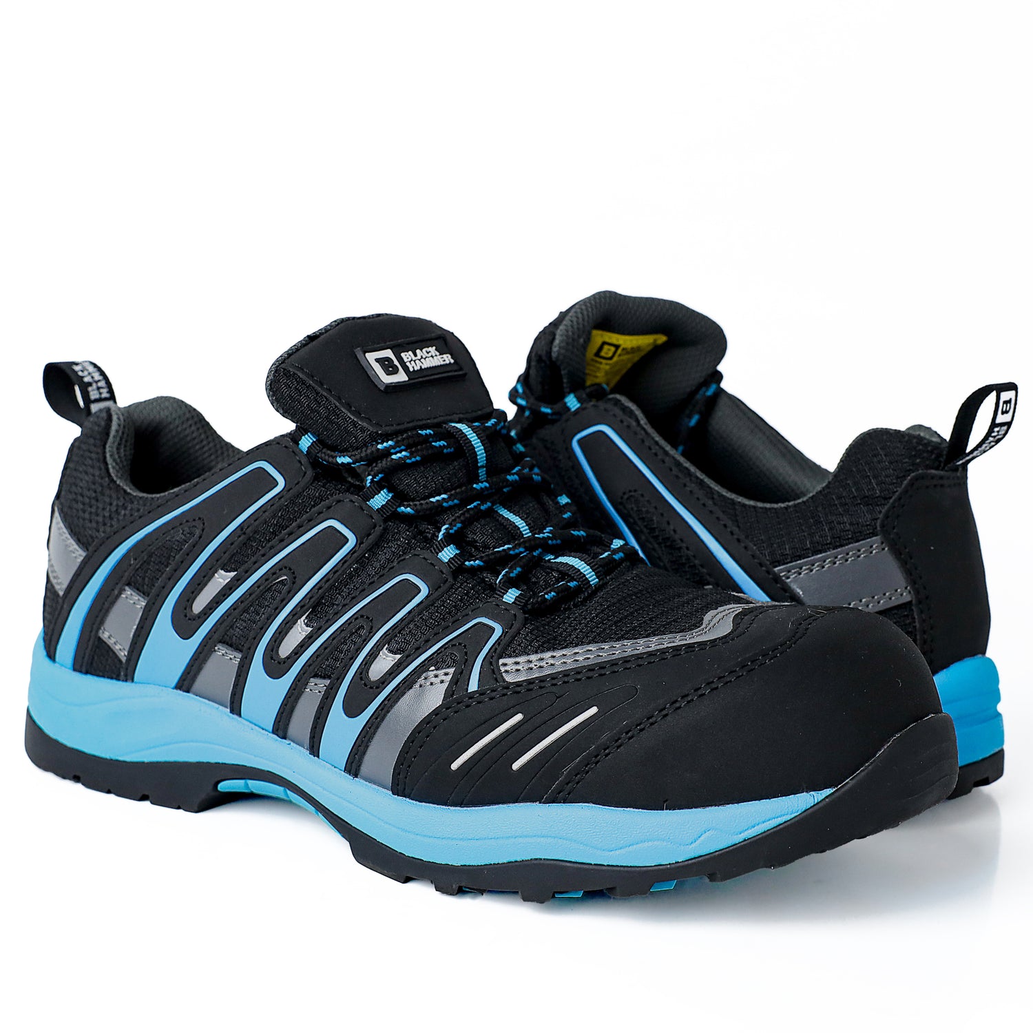 Tough jobs call for tougher footwear. The Black Hammer 2129 Wave combines cutting-edge protection with lightweight comfort. Featuring a fiberglass toe cap, puncture-resistant midsole, and slip-resistant sole, these metal-free safety trainers are built for demanding days. Crafted from durable microfiber and finished with a memory foam insole, they deliver breathable comfort and long-lasting support. Water-resistant and impact-ready, they offer serious protection without the bulk.